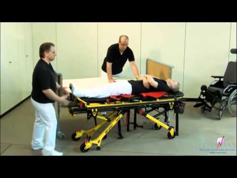 In Kombination mit dem Rollboard Vision kann auch eine liegende Person auf den aufgeklappten Tragesitz umgelagert werden.